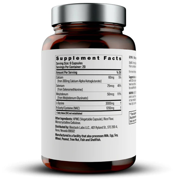 Формула с пет активни съставки: глицин, N-ацетил цистеин (NAC), Ca-AKG, селен и молибден